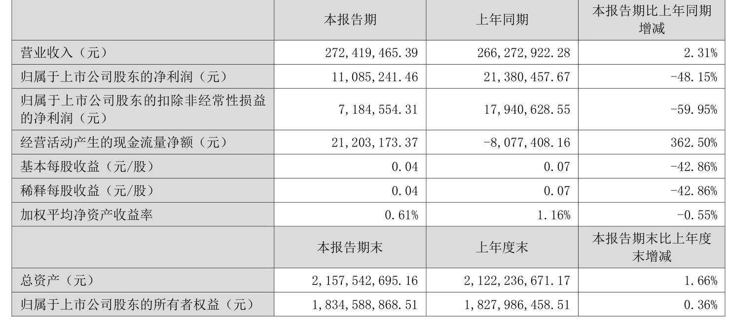 中证智能财讯五方光电(002962)4月26日披露2025年第一季度报告。公司实现营业总收入2.72亿元,同比增长2.31%;归母净利润1108.52万元,同比下降48.15%;扣非净利润718.46万元,同比下降59.95%;经营活动产生的现金流量净额为2120.32万元,上年同期为-807.74万元;报告期内,五方光电基本每股收益为0.04元,加权平均净资产收益率为0.61%。