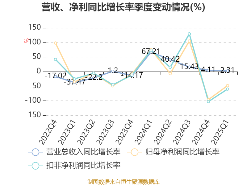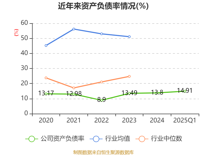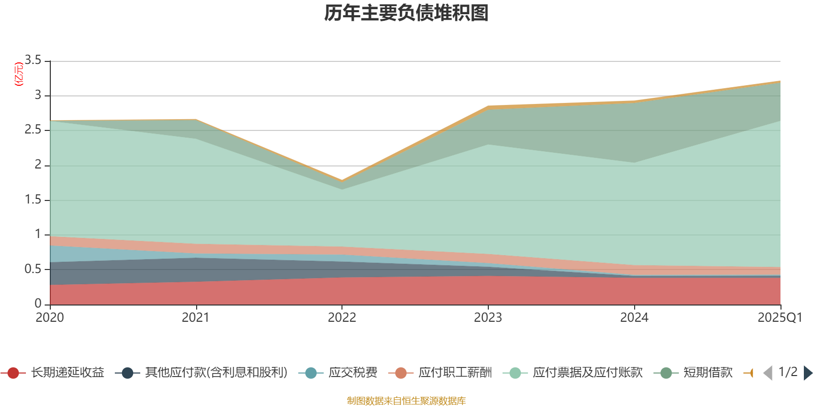 负债重大变化方面,截至2025年一季度末,公司应付票据及应付账款较上年末增加42.78%,占公司总资产比重上升2.8个百分点;短期借款较上年末减少35.77%,占公司总资产比重下降1.49个百分点;应付职工薪酬较上年末减少23.08%,占公司总资产比重下降0.16个百分点;预收款项较上年末减少27.31%,占公司总资产比重下降0.03个百分点。