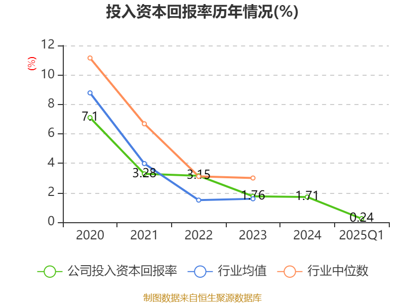 盈利能力方面, 2025年一季度公司加权平均净资产收益率为0.61%,同比下降0.55个百分点。公司2025年第一季度投入资本回报率为0.24%,较上年同期下降0.52个百分点。