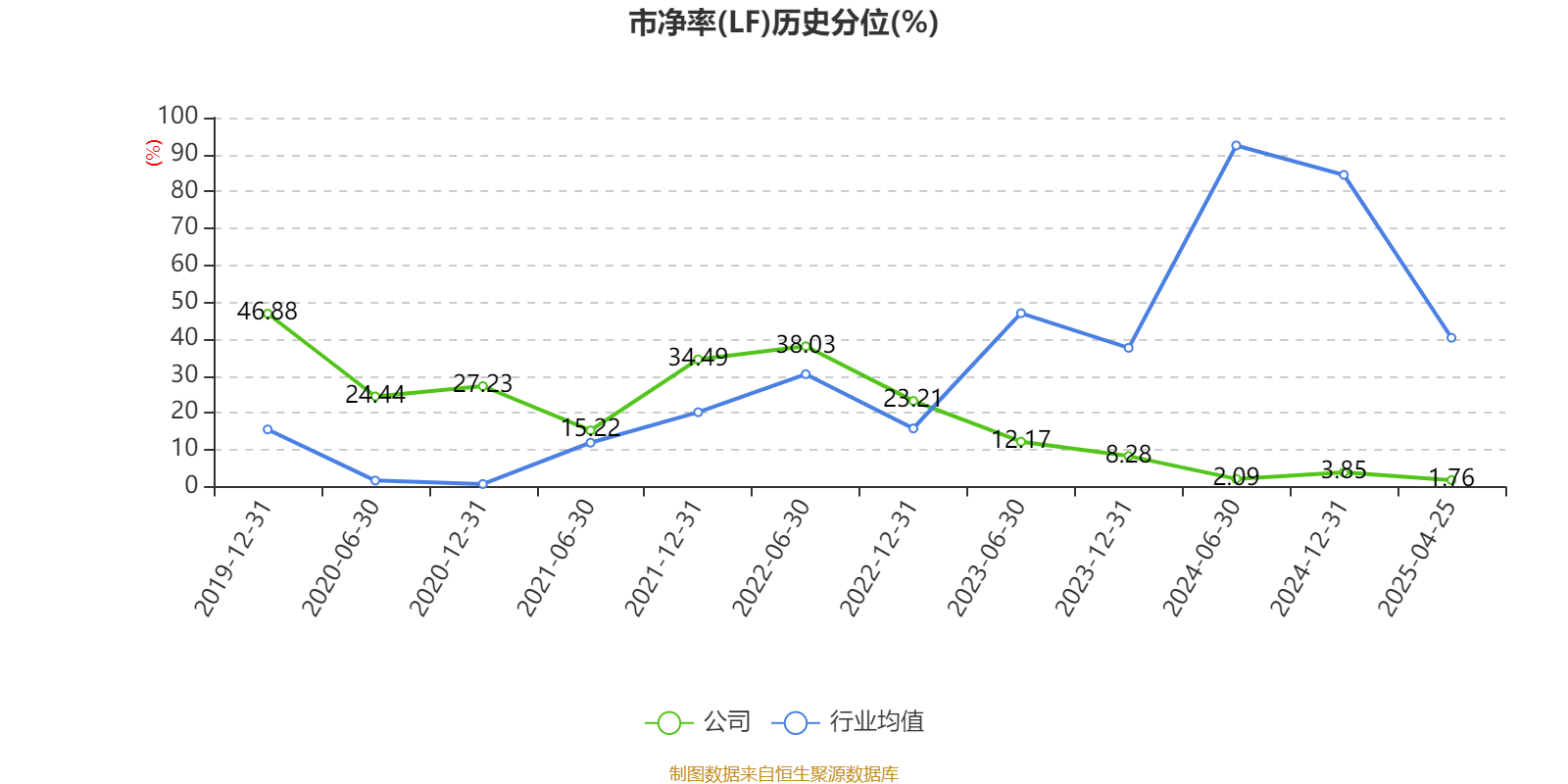 市盈率、市净率为负时明利配资端,不显示当期分位数,会导致折线图中断。