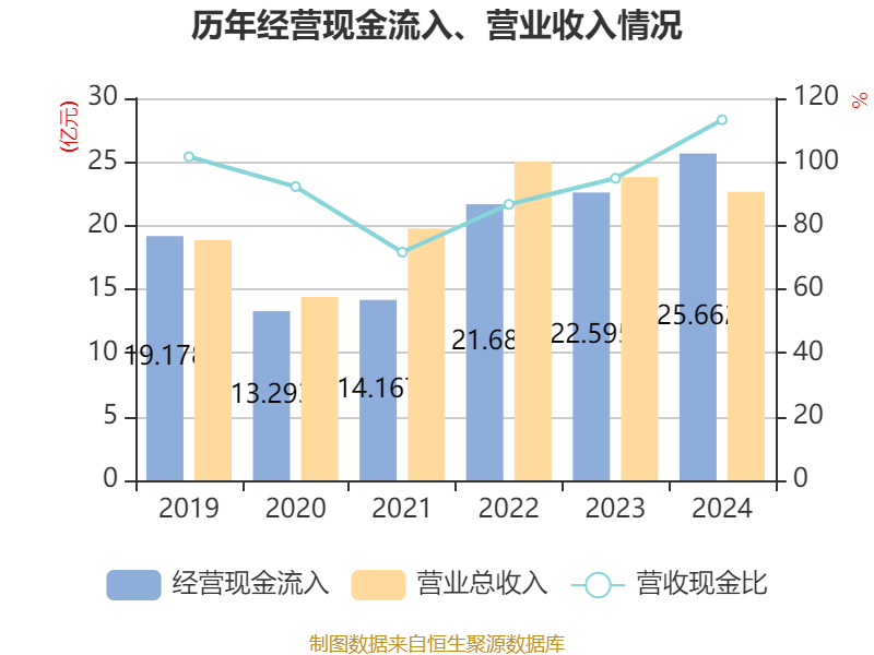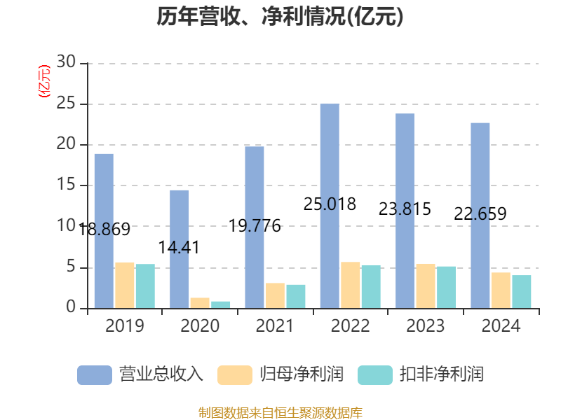 中证智能财讯蓝焰控股(000968)4月25日披露2024年年度报告。2024年,公司实现营业总收入22.66亿元,同比下降4.85%;归母净利润4.34亿元,同比下降19.58%;扣非净利润4.02亿元,同比下降20.87%;经营活动产生的现金流量净额为11亿元,同比下降2.42%;报告期内,蓝焰控股基本每股收益为0.45元,加权平均净资产收益率为7.47%。公司2024年度分配预案为:拟向全体股东每10股派现0.3元(含税)。
