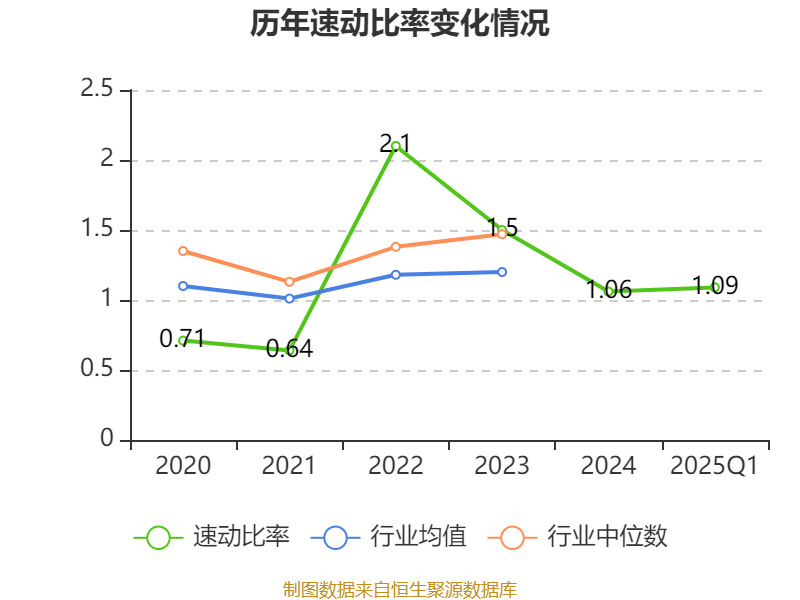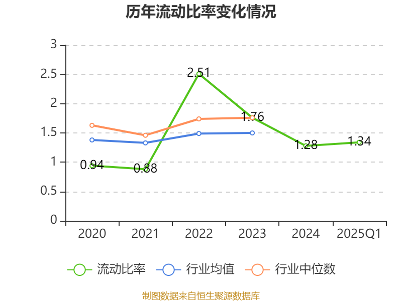 2025年第一季度,公司流动比率为1.34,速动比率为1.09。