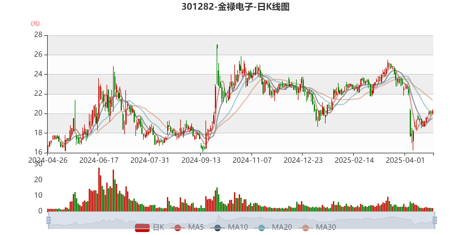 以4月25日收盘价计算,金禄电子目前市盈率(TTM)约为36.98倍,市净率(LF)约1.81倍,市销率(TTM)约1.83倍。