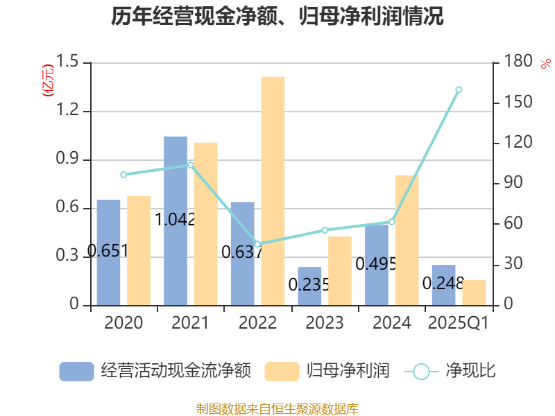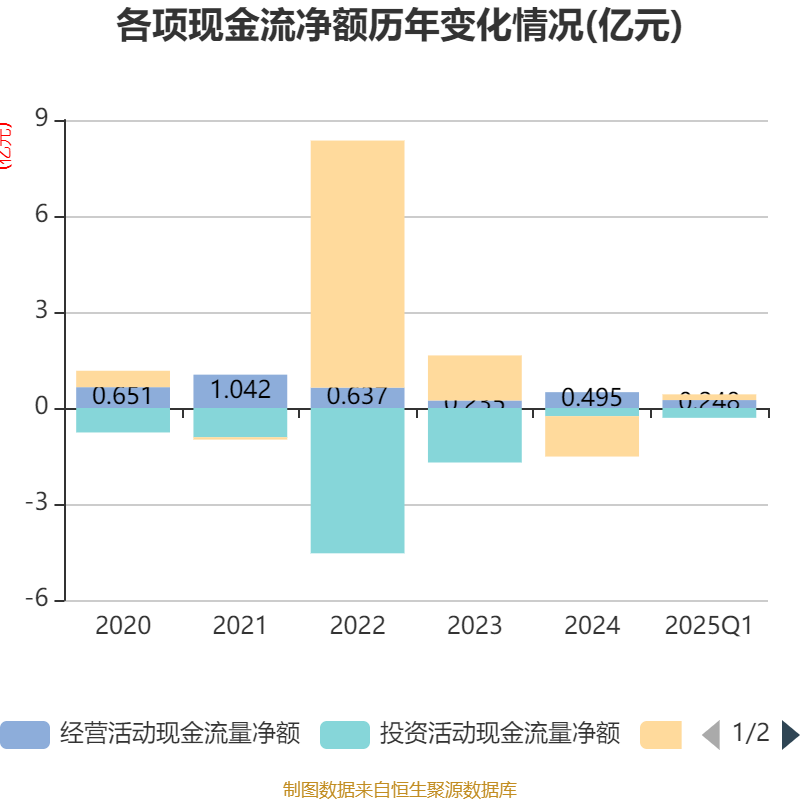 截至2025年一季度末,公司经营活动现金流净额为2482.63万元,同比增加3021.77万元;筹资活动现金流净额1788.23万元大盈家,同比增加8361.24万元;投资活动现金流净额-3066.05万元,上年同期为-1947.03万元。