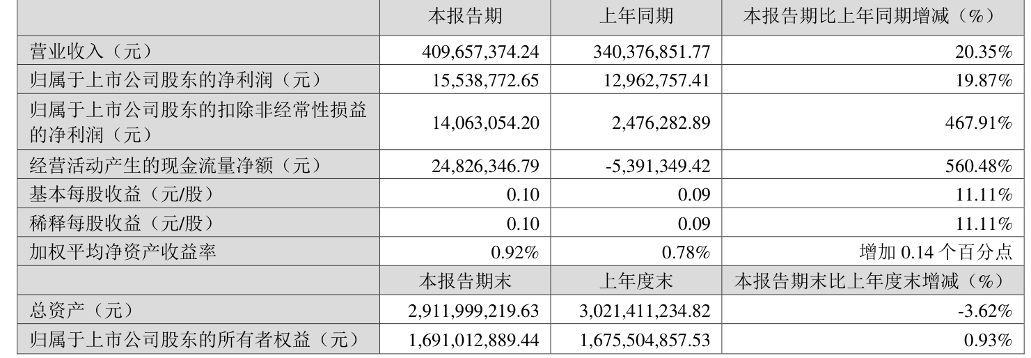 中证智能财讯金禄电子(301282)4月26日披露2025年第一季度报告。公司实现营业总收入4.1亿元,同比增长20.35%;归母净利润1553.88万元,同比增长19.87%;扣非净利润1406.31万元,同比增长467.91%;经营活动产生的现金流量净额为2482.63万元,上年同期为-539.13万元;报告期内,金禄电子基本每股收益为0.1元,加权平均净资产收益率为0.92%。