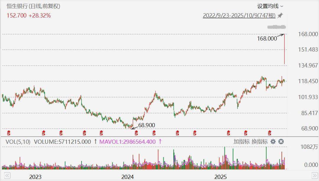 恒生银行(0011.HK)盘初飙升41%,报168港元,股价创历史新高。消息面上,恒生银行在港交所公告至慧策略,汇丰亚太作为要约人至慧策略,已要求恒生银行董事会向计划股东提呈建议至慧策略,根据公司条例第673条以协议安排方式将恒生银行私有化。倘若计划生效,计划股份将予以注销,以换取计划对价,即持有每股计划股份可获现金155.00港币。公告称,汇丰十分尊重恒生银行的独特地位,计划继续透过汇丰及恒生银行两大品牌,服务香港市场。因此,恒生银行将保留其根据香港银行业条例所独立获授的持牌银行认可,并维持独立的企业管治、品牌形象、独特的市场定位,以及分行网络。