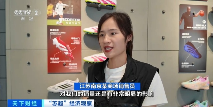 江苏南京某商场销售员:最近足球的热度对我们的销量还是有非常明显的影响,近一个月大概有20%到30%的增长。