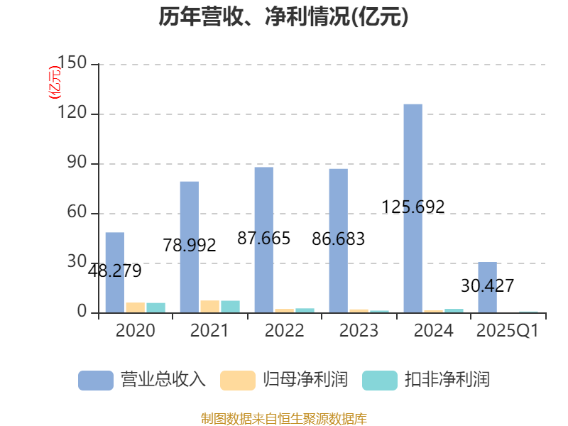 资产重大变化方面,截至2025年一季度末,公司在建工程合计较上年末减少28.75%,占公司总资产比重下降2.18个百分点;存货较上年末增加6.01%,占公司总资产比重上升1.02个百分点;其他应收款(含利息和股利)较上年末增加83.13%,占公司总资产比重上升0.86个百分点;应收票据及应收账款较上年末减少48.41%,占公司总资产比重下降0.67个百分点。