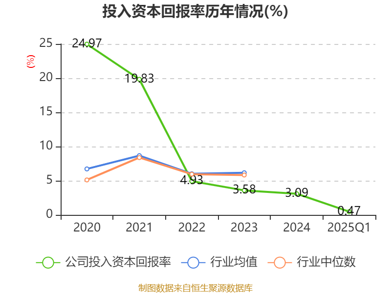 盈利能力方面, 2025年一季度公司加权平均净资产收益率为0.11%,同比上升1.84个百分点。公司2025年第一季度投入资本回报率为0.47%,较上年同期上升0.89个百分点。