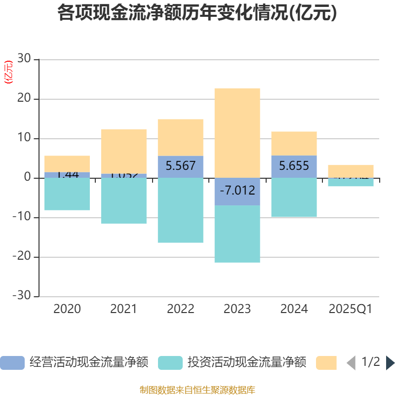 截至2025年一季度末正中优配,公司经营活动现金流净额为-2635.48万元,同比增加8584.43万元;筹资活动现金流净额3.23亿元,同比减少1.34亿元;投资活动现金流净额-1.89亿元,上年同期为-3.15亿元。